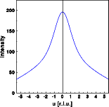 In this first example we calculate the Fourier transform of a single silicon atom. The scattering factors for X-rays are used. The atom is shown schematically as a disk. Later examples show the actual electron density distribution. The pictures below show the single atom and the corresponding 1D and 2D Fourier transform. Remember that you can get a full screen version of the pictures by clicking on them.