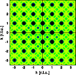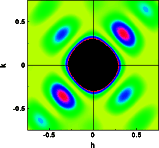 ![]() ![]() As expected, the Bragg reflections are convoluted by the Fourier transform of the shape function again. This time the subsidiary maxima are positioned long the diagonal axes. These features represent the Fourier transform of the shape function. The box is simulated by filling the shape at random with a large number (800) of atoms (left image). The resulting electron density distribution fills the box fairly equally. Next the Fourier transform is calculated in a small section of reciprocal space near the origin. The calculated intensity distribution corresponds to the distribution of the subsidiary maxima observed in the Fourier transform above.