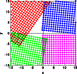 ![]() ![]() ![]() A technical note: The diffraction pattern at the right hand side was calculated from the sum of intensities calculated for the four individual crystals at the left hand. This addition corresponds to the incoherent diffraction by individual crystals. |